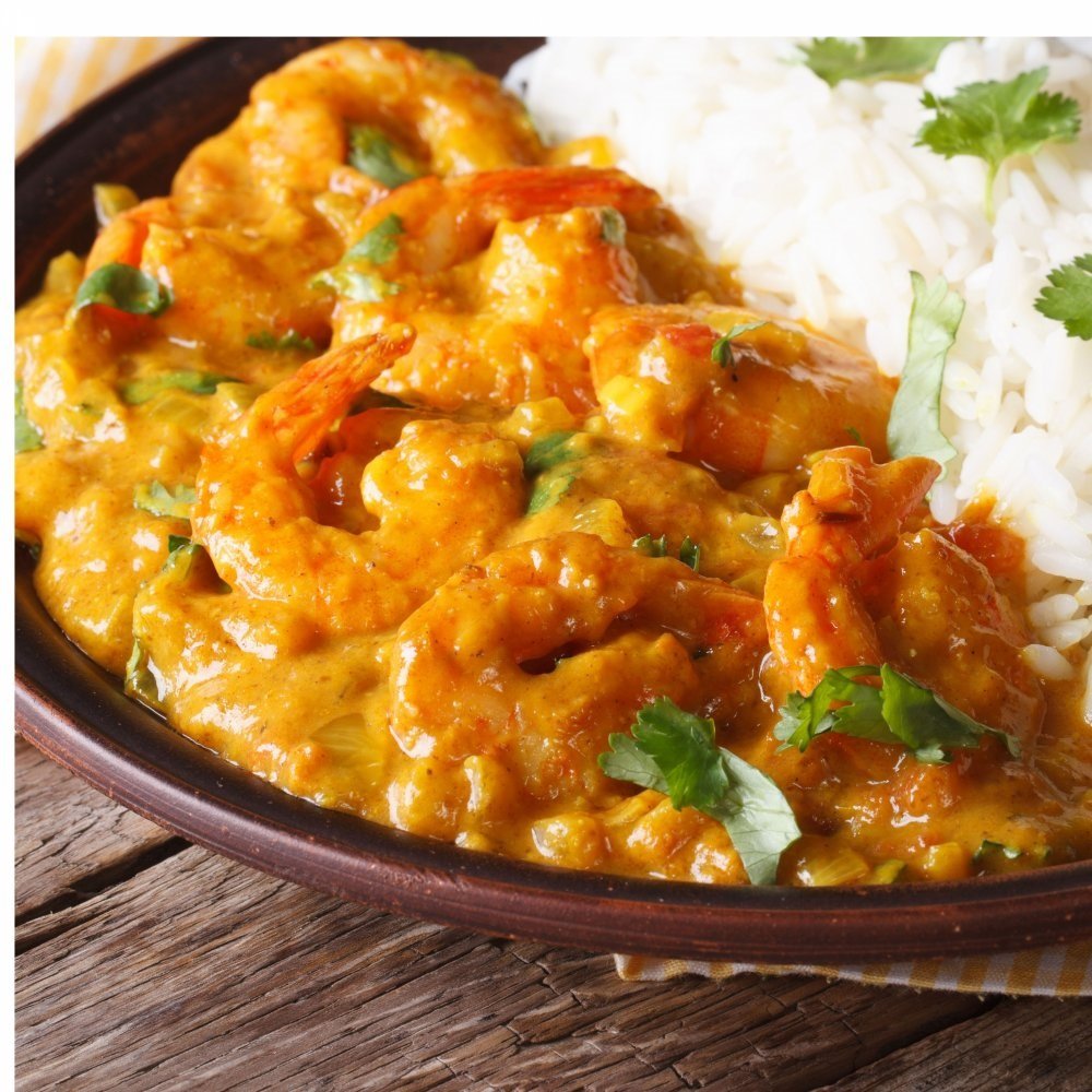 Curry de grosse crevettes aux mirabelles