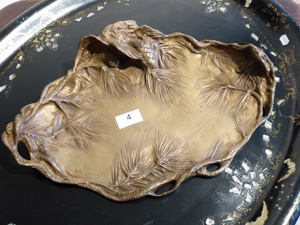 Des pièces inattendues, bijoux, coupe-papier en bronze, grand vide-poche 1900 en bronze Marionnet, et médaille réalisée par Prouvé à l’effigie de Friand.