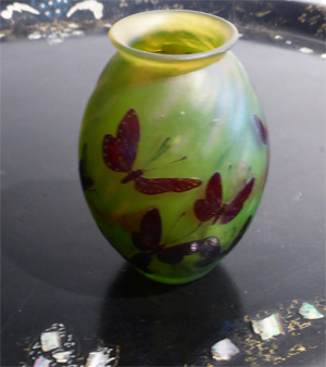Encore cet objet en pâte de verre signé Walter ou ce vase de Legras opaliné.