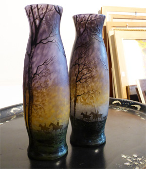 D’autres lots retenus par Maître Teitgen comme cette paire de vases de 31cm au décor de chasse, signés Muller .