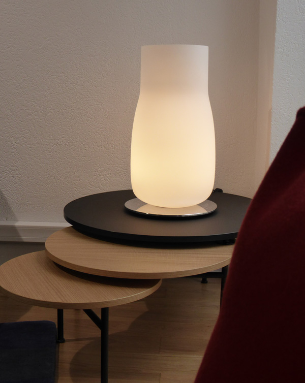 un vrai coup de cœur pour cette création des faïenceries de Charolles qui existe en de très nombreuses couleurs, en mat ou en brillant et de 2 tailles différentes, et cette lampe Pharo posée que un buffet ou à même le sol.