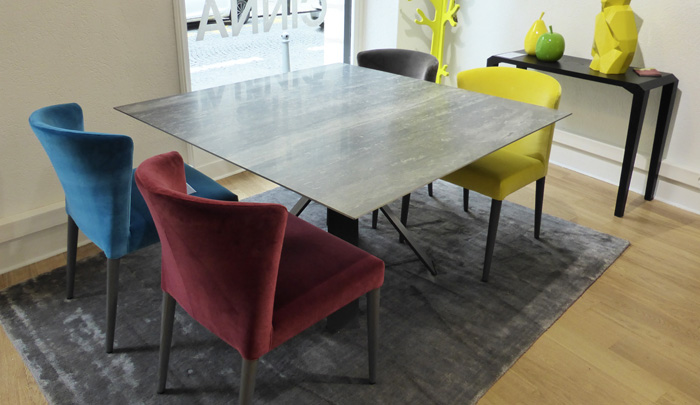 Les tables Triss ( marque française implantée au Mans ) représentent une des marques que l’on peut également retrouver chez Cinna, en céramique elles peuvent atteindre des dimensions permettant d’accueillir 20 convives !