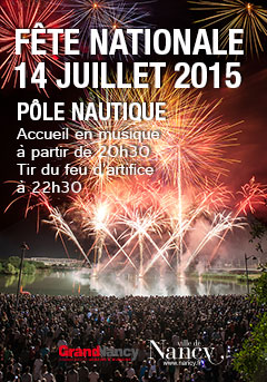 Rendez-vous au Pôle Nautique à Nancy pour le bal et les feux d’artifice qui se reflètent dans la Meurthe, visibles de près ou sur les coteaux !