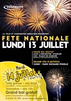 Le 13 juillet, toute la soirée est consacrée à la Fête nationale, soirée co-organisée par la ville, avec le concours du 53e RT, des sapeurs pompiers de Lunéville.