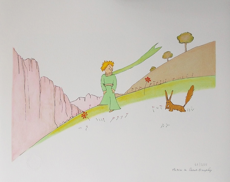 Une série rare de lithographies du  » Petit Prince », estampillées succession Antoine de Saint Exupéry.