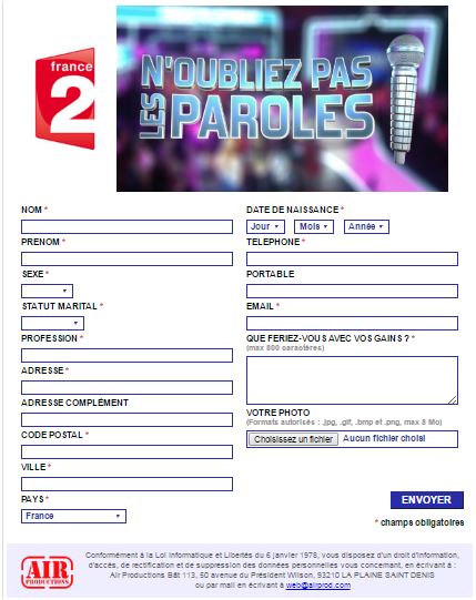 Vous chantez juste, connaissez bien les standards de la variété française et avez envie de passer une folle après-midi, alors tentez votre chance en vous inscrivant sur le site de France 2 – ici