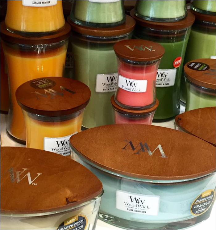 Les bougies WoodWick sont distribuées par ICD Collections.