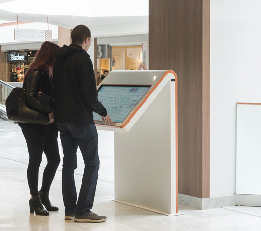 -L’accueil est déplacé au rez-de-chaussée, des bornes interactives sont installées pour se déplacer plus rapidement ( consulter les dernières actualités, la liste des boutiques et leur emplacement, les animations et offres proposées par les enseignes etc.), des enseignes devant chaque boutique …