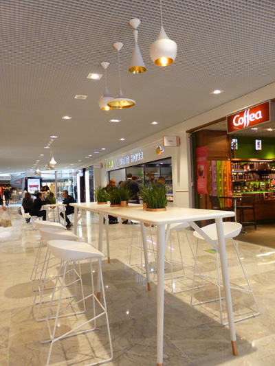 – Un nouveau mail gourmand, composé de tables végétalisées avec tabourets et prises électriques, pour permettre aux clients de faire une pause gourmande dans un espace convivial et agréable, à proximité des enseignes de restauration rapide