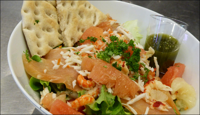 Les plats sont faits maison, salades, croque-monsieur, tajine, poulet au curry, carpaccio et brochettes, fish and chips, paniers de légumes vapeur … de 9,80 € à 10,80 € la semaine, le week-end un peu plus élaborés à 11,80 €.