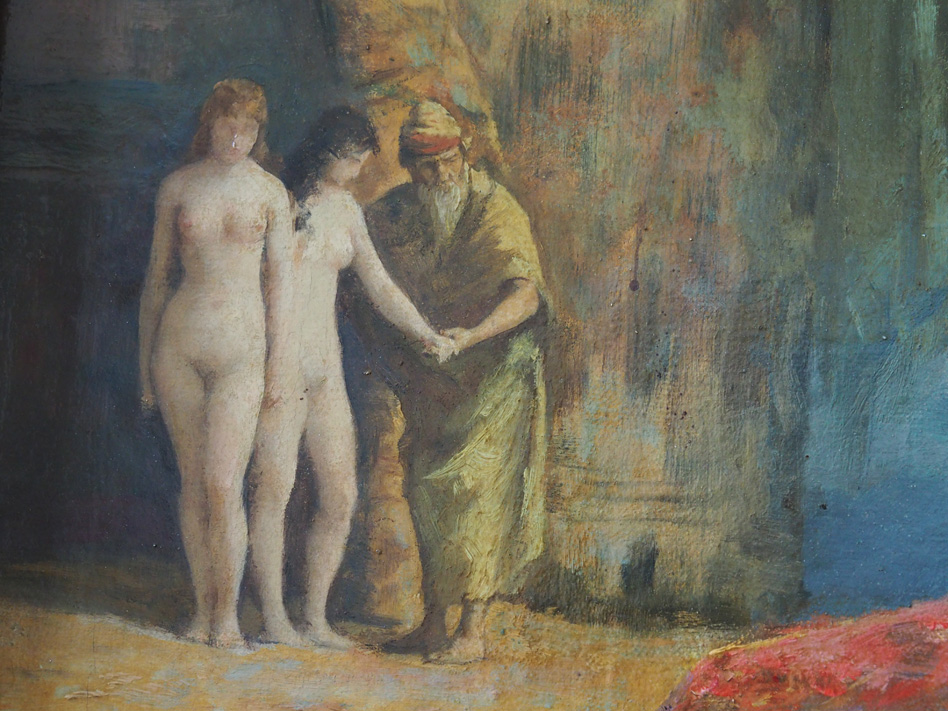 Le choix du sujet, teinté d’érotisme et d’une certaine violence, rappelle certaines compositions de Jean-Léon Gérôme et annonce celles de Guilio Rosati.