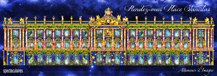 Le spectacle sera projeté sur 5 des façades de la Place : Hôtel de Ville, Musée des Beaux-arts, Opéra national de Lorraine, Pavillon Jacquet et Alliot.