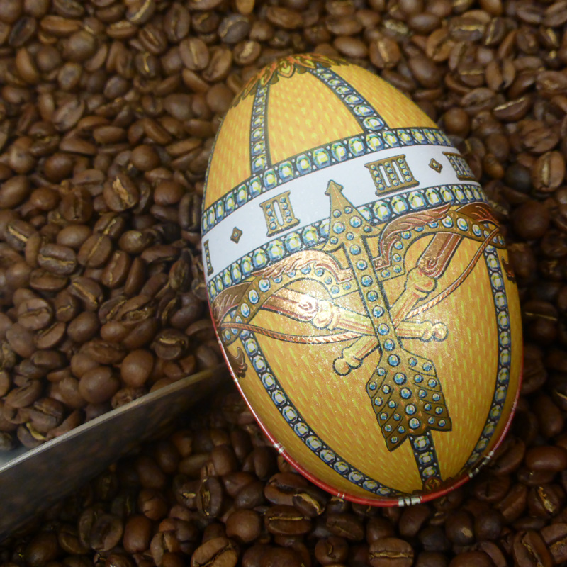 A Nancy, j’ai trouvé ces œufs en métal, aux décors qui rappellent les œufs de Fabergé.